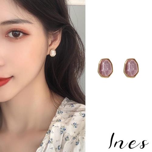 【INES】韓國設計S925銀針法式復古幾何水晶寶石耳環 (2色任選)