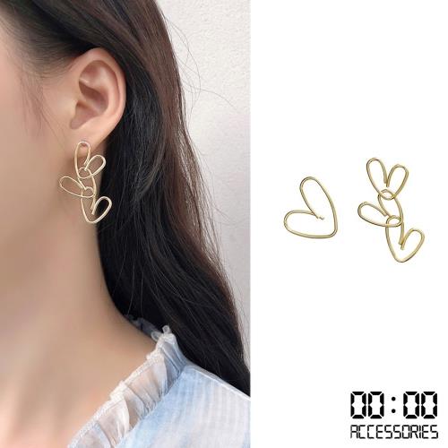 【00:00】韓國設計S925銀針不對稱愛心線條時尚耳環