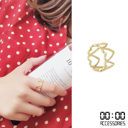 【00:00】韓國設計縷空愛心幾何復古開口戒