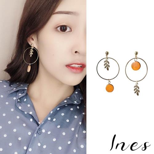 【INES】韓國設計手作不對稱幾何圓木片小樹圓環造型耳環