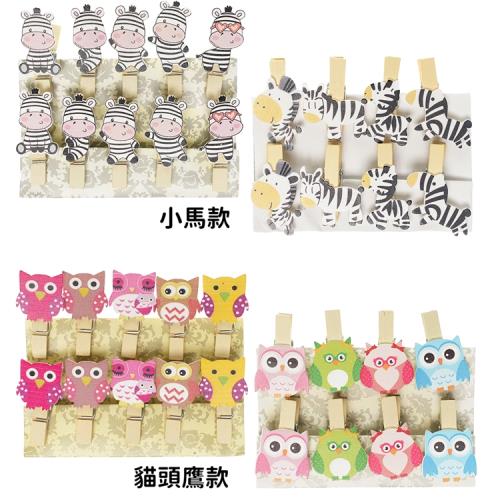 照片牆必備木夾子照片夾明信片夾裝飾夾生日佈置美勞用品木夾子小馬/貓頭鷹款2卡組 075112【卡通小物】
