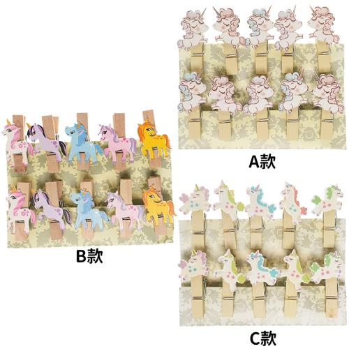 照片牆必備木夾子照片夾明信片夾裝飾夾生日佈置美勞用品木夾子彩虹小馬/獨角獸款2卡組 075118【卡通小物】