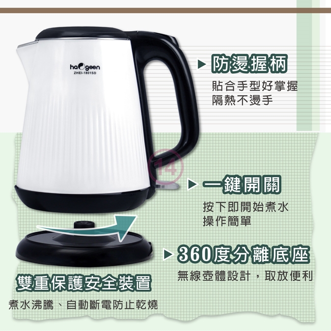 ◎雙重安全保護裝置:水沸騰將自動斷電並防止乾燒