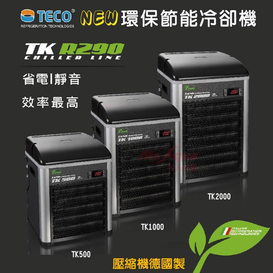 二、TECO S.r.l環保節能冷卻機-TK1000 ◆壓縮機能量:HP 1/4 ◆冷媒型號:R290 ◆循環馬達流量:1000公升/小時 ◆耗電量:270W ◆重量: 19.7KG ◆產品尺寸:31X31X45.8CM ◆外盒尺寸:40X41X63CM
