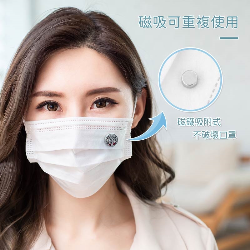 將磁鐵口罩扣吸附於口罩上