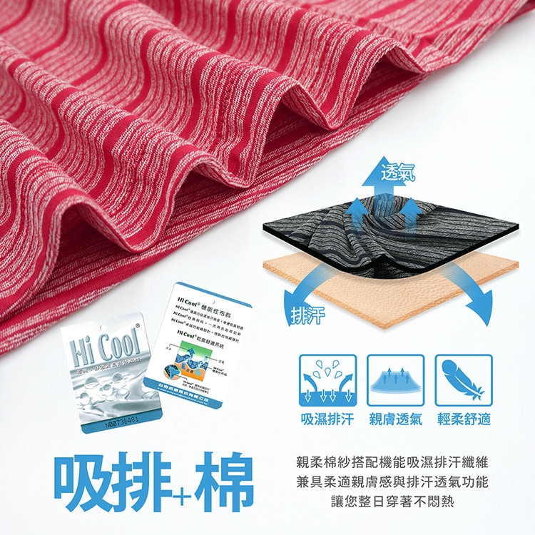 橫條款材質:棉40% 聚酯纖維(吸濕排汗紗)40% 聚酯纖維(抗菌防臭紗)20%