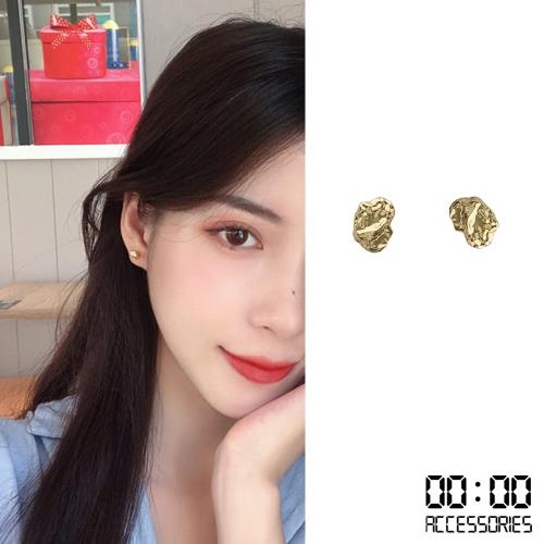 【00:00】韓國設計S925銀針不規則錫紙凹凸感小巧耳釘 (2色任選)