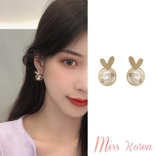 【MISS KOREA】韓國設計S925銀針甜美微鑲珍珠愛心氣質耳環