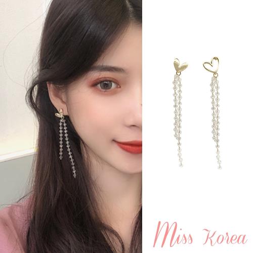 【MISS KOREA】韓國設計S925銀針不對稱愛心氣質水晶串鍊耳環