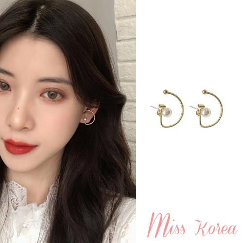 【MISS KOREA】韓國設計S925銀針法式復古線條繞耳廓式珍珠耳環