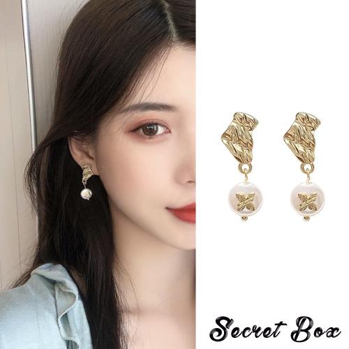 【SECRET BOX】韓國設計S925銀針復古巴洛克歐風珍珠耳環