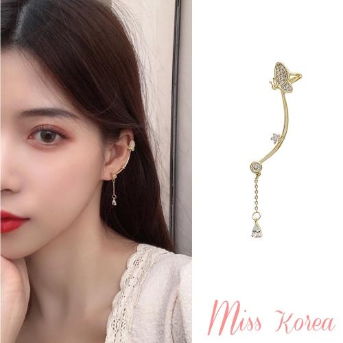 【MISS KOREA】韓國設計S925銀針氣質滿鑽蝴蝶水滴寶石耳釘單只