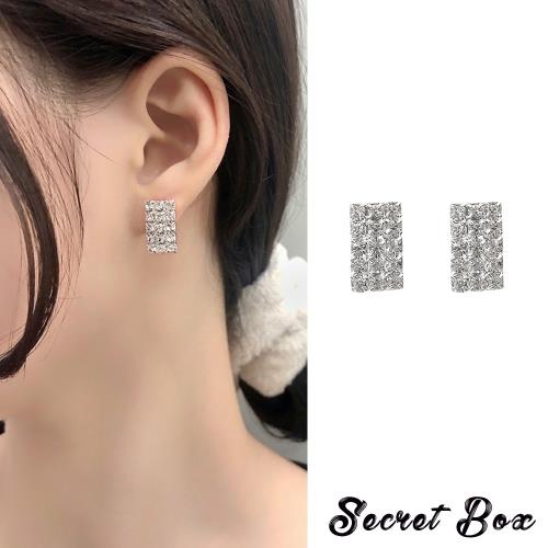 【SECRET BOX】韓國設計S925銀針滿鑽幾何華麗耳環