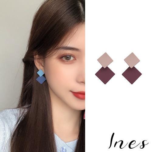 【INES】韓國設計S925銀針復古幾何方形撞色個性耳環 (3色任選)