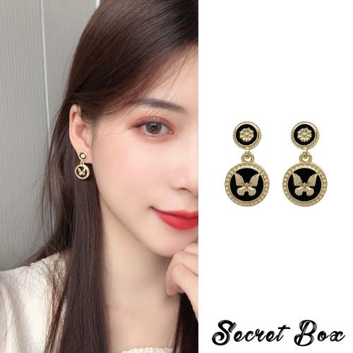 【SECRET BOX】韓國設計S925銀針復古歐式蝴蝶造型耳環 (2色任選)