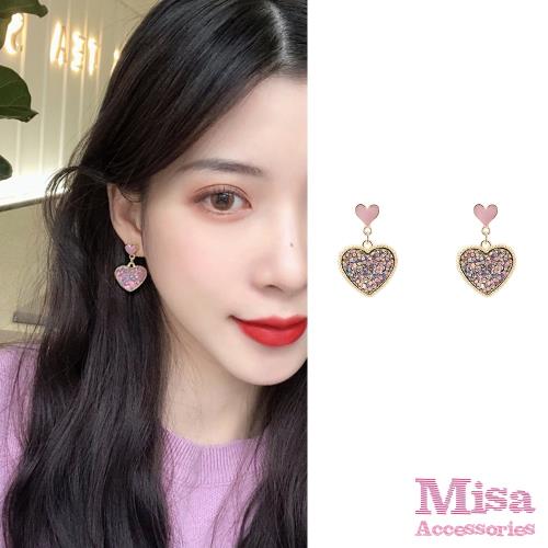【MISA】韓國設計S925銀針可愛愛心彩色亮片造型耳環