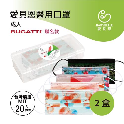 【BABYBELLE 愛貝恩】MIT 雙鋼印成人醫用口罩-BUGATTI 聯名款-5款任選2盒(20入-附收納盒)