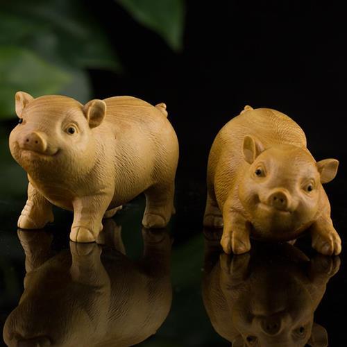 【米蘭精品】豬寶寶黃楊木把件-十二生肖可愛木雕家居擺件2款74ap7