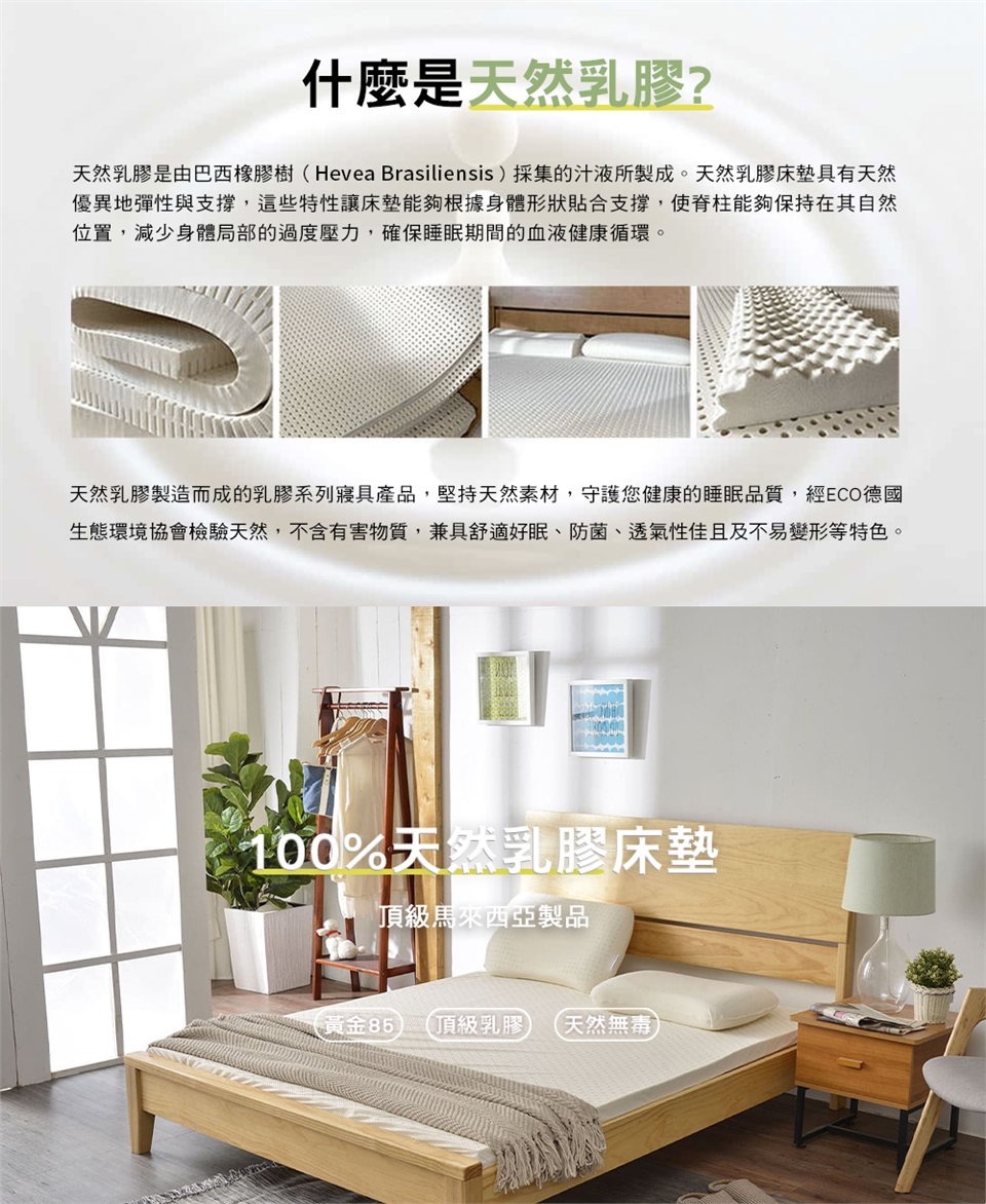 (二)從植物粹取的乳膠,純天然產品具防蹣抗菌,讓您有更健康的睡眠品質。