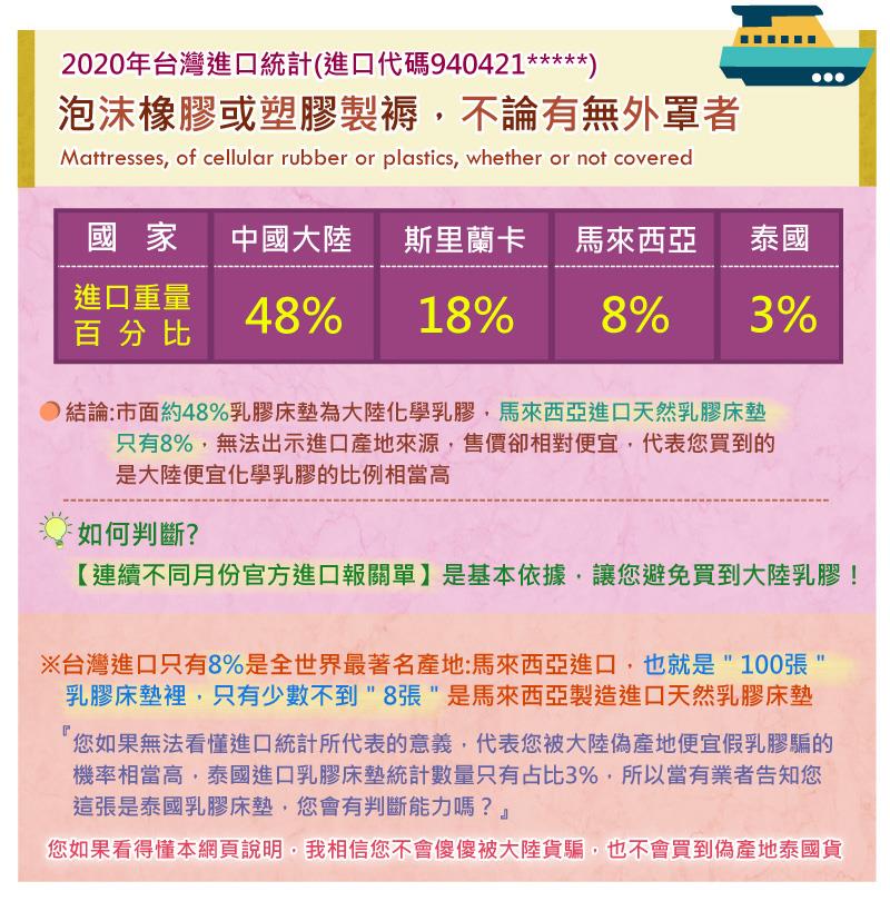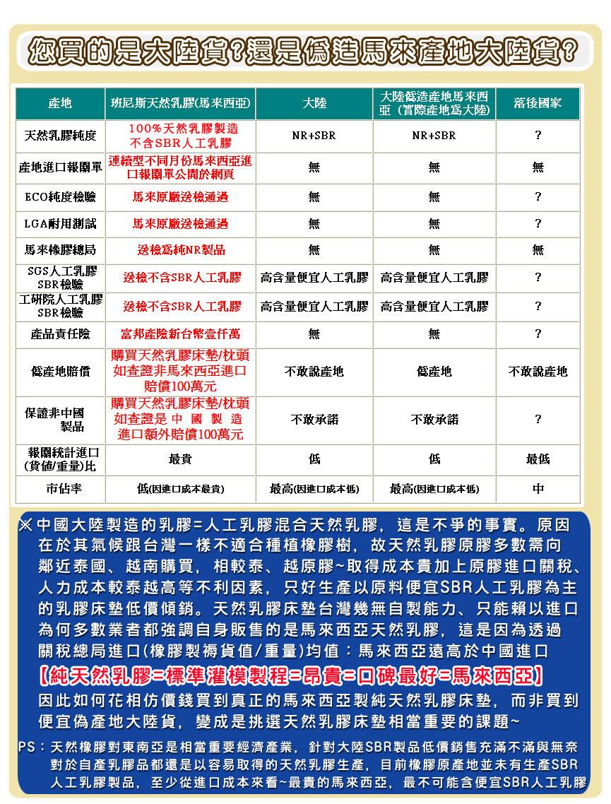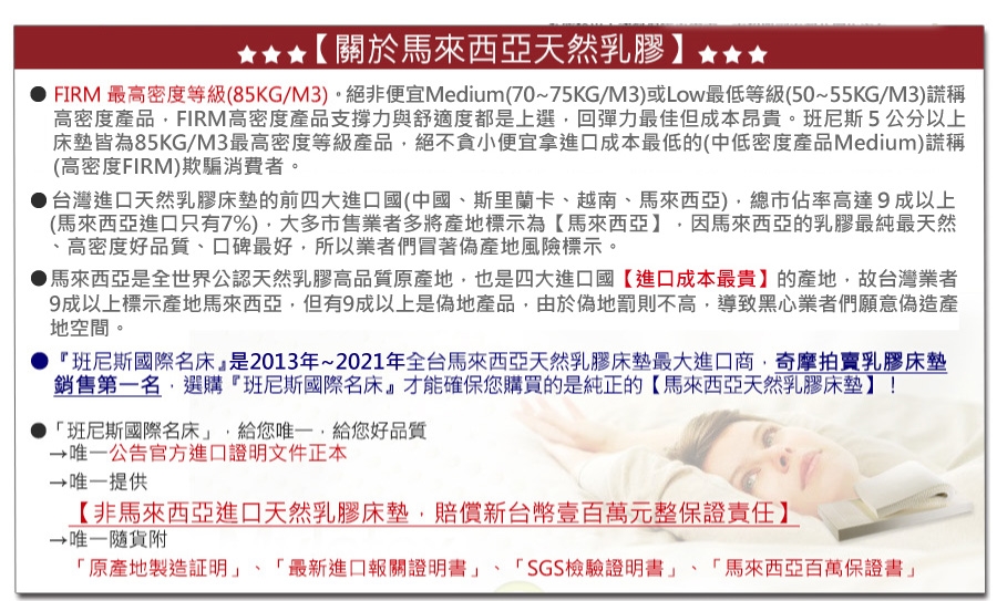 故『馬來西亞~公認為東南亞一般高純度、高舒適的乳膠床墊最大來源地』