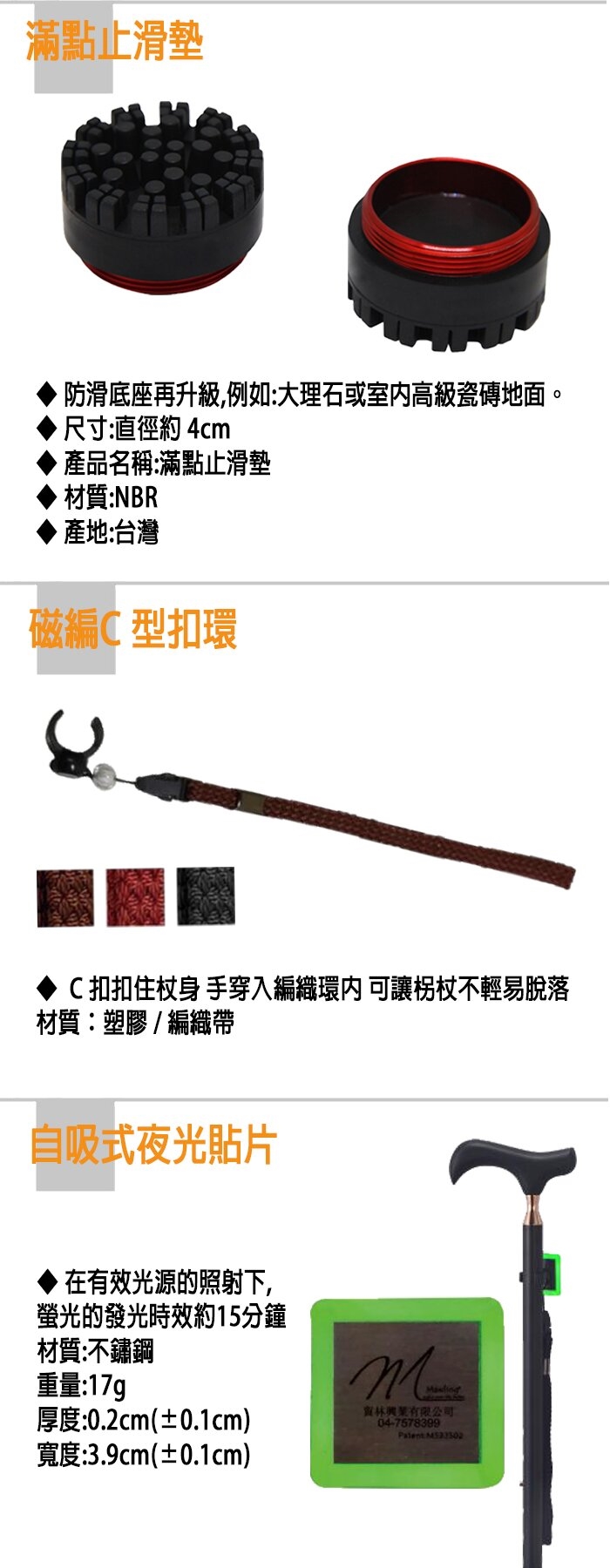 ◆ 腳墊:標準止滑墊(TPR)+滿點止滑墊(NBR)