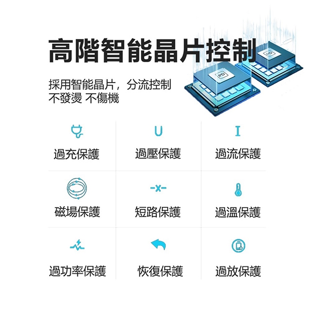 ◎ 高階智能晶片9大保護,分流控制,不發燙、不傷機!