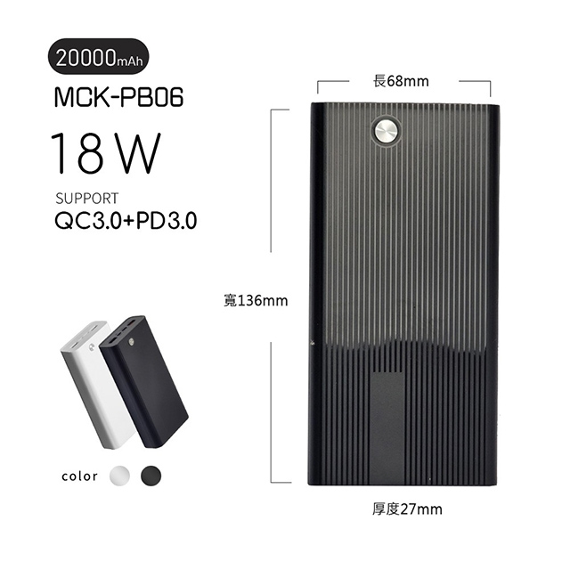 產品名稱:PB06 (20000mAh)PD+QC行動電源