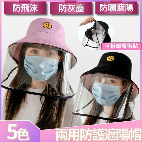 【I.Dear】日韓防曬遮陽防飛沫可拆卸魔術貼式面罩笑臉刺繡漁夫帽遮陽帽(3色)現貨