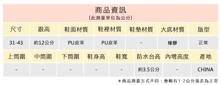 2.鞋類商品依功能及用途之不同,鞋底各有其止滑係數之個別不同,使用鞋類商品請用於正常平坦之路面,非雨鞋或雨靴類商品,請避免穿著於下雨濕滑路面上行走。