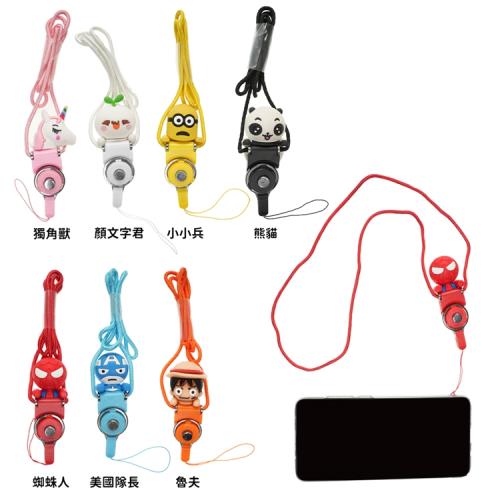 活動式手機頸掛繩識別證帶手機背帶 44-00093(蜘蛛人美國隊長海賊王魯夫小小兵獨角獸熊貓)【卡通小物】