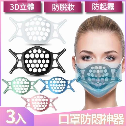 【I.Dear】口罩防悶神器避免脫妝防起霧可水洗3D立體矽膠口罩支架(5色)三入組