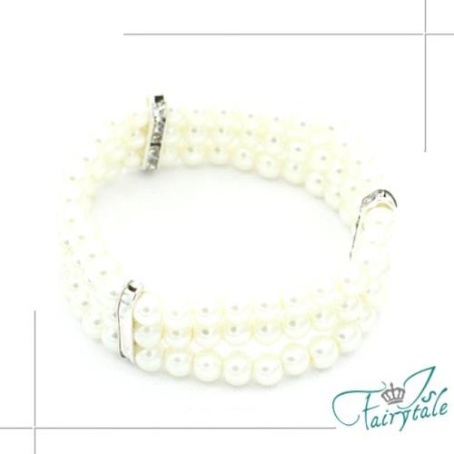 【伊飾童話】三層珍珠*水鑽彈性手鍊