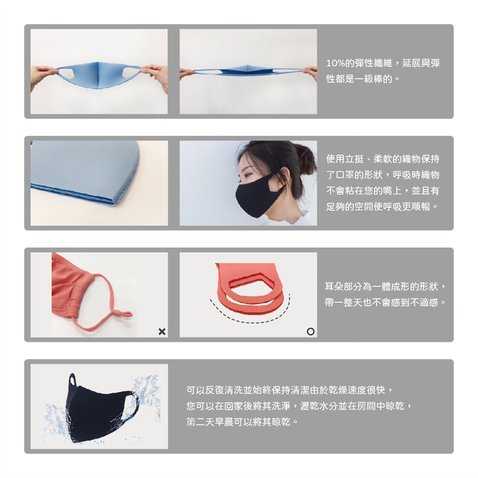 完全貼合臉部曲線,戴眼鏡時,減少霧氣