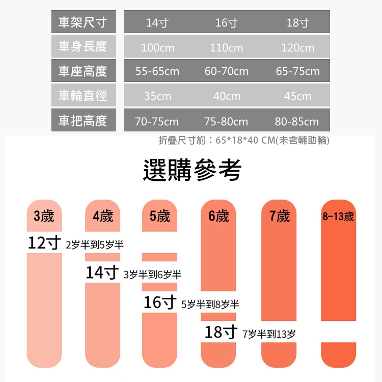 折疊尺寸:65*18*40 CM(未含輔助輪)