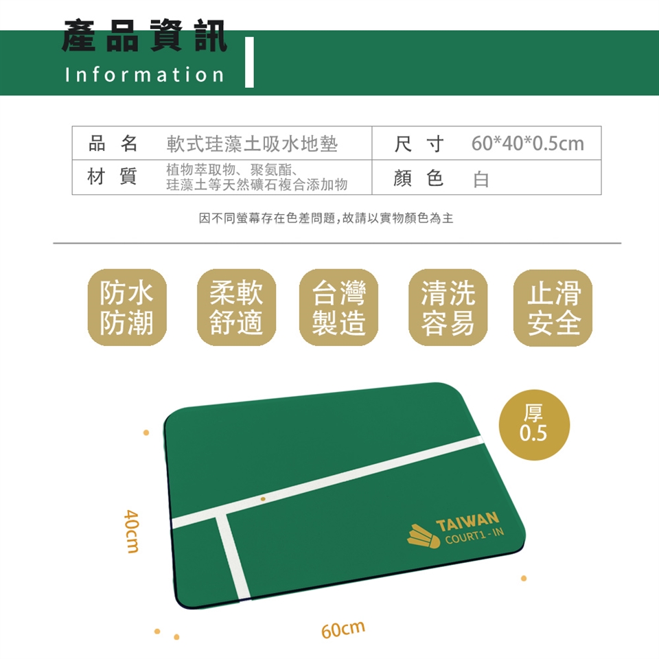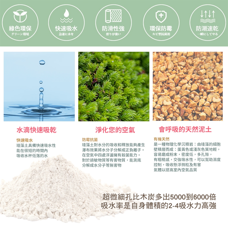 快乾洗水地墊,可放置於浴室外、廚房等地方。