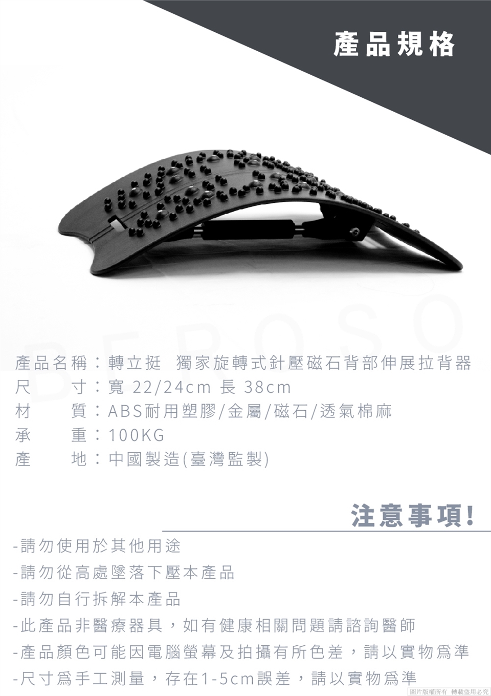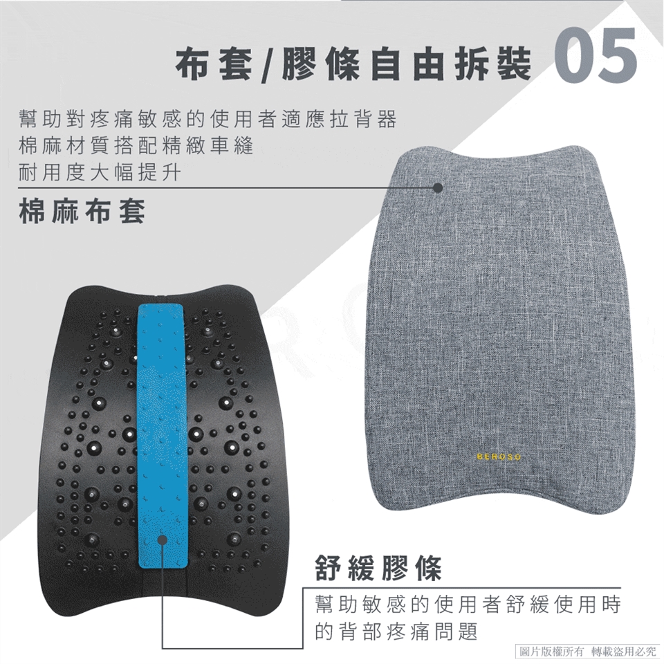 商品名稱:Beroso倍麗森寬版旋轉式磁石腰椎按摩拉背器(附布套)