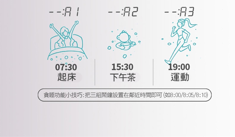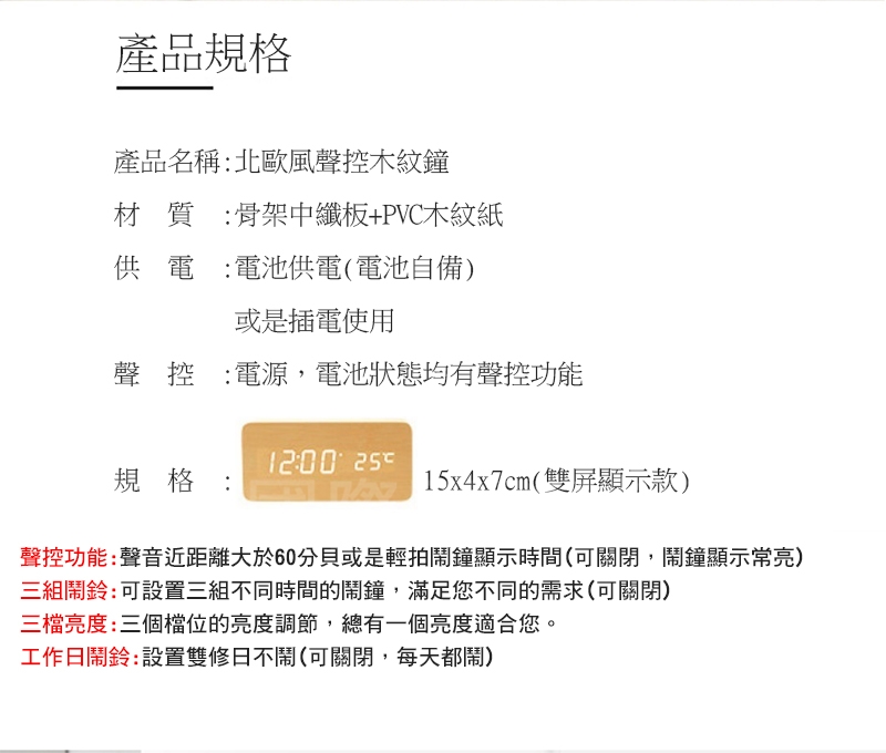 ★LED鐘相較於普通鬧鐘較為耗電,可以開啟聲控功能,有聲音或觸碰才會亮燈,這樣較省電