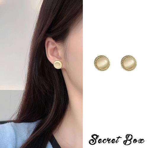 【SECRET BOX】韓國設計S925銀針小巧貓眼石氣質耳釘