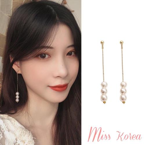 【MISS KOREA】韓國設計S925銀針溫柔氣質長流蘇珍珠耳環