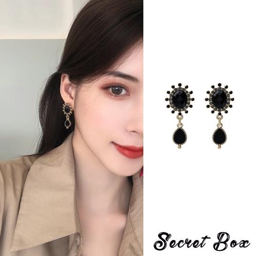 【SECRET BOX】韓國設計S925銀針神秘氣質復古黑寶石美鑽耳環