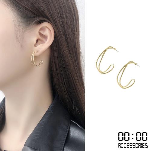 【00:00】韓國設計S925銀針幾何扭曲線條個性C圈耳環 (2色任選)