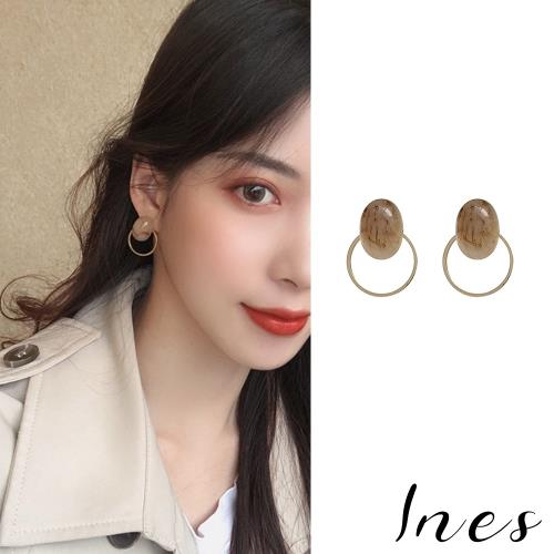 【INES】韓國設計S925銀針簡約設計感玳瑁紋寶石耳環