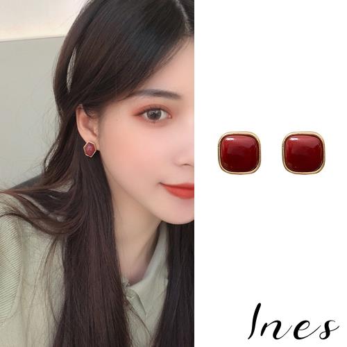 【INES】韓國設計S925銀針溫柔氣質暗紅色復古不規則寶石耳環 (2款任選)