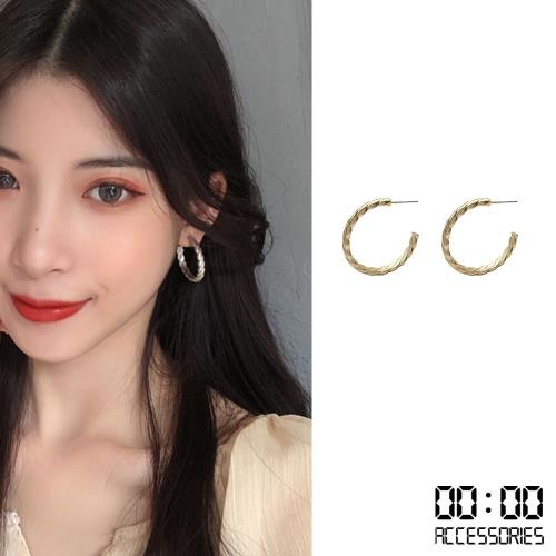 【00:00】韓國設計S925銀針經典復古金屬麻花C圈耳環 (2色任選)