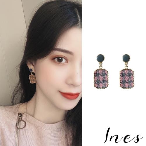 【INES】韓國設計S925銀針復古千鳥格紋拼接撞色滴釉造型耳環 (3色任選)