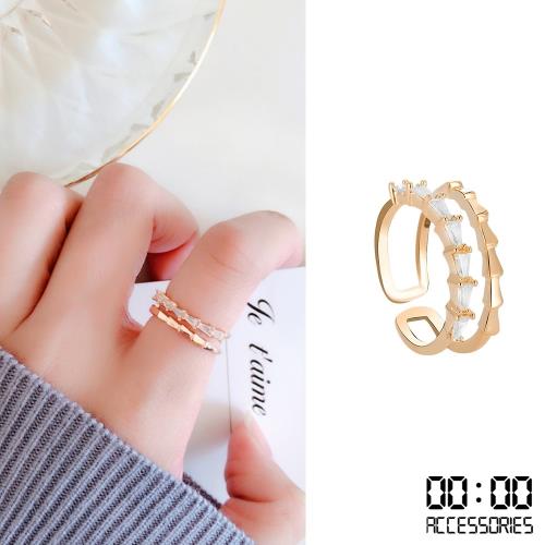 【00:00】韓國設計個性三角鋯石雙環造型開口戒
