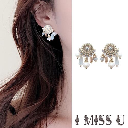 【I MISS U】韓國設計S925銀針華麗民族風復古寶石串飾耳環
