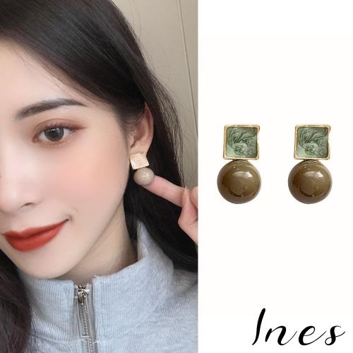 【INES】韓國設計S925銀針氣質撞色滴釉復古耳環 (2色任選)