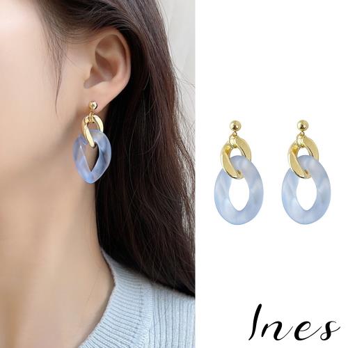 【INES】韓國設計S925銀針清新透明藍色鍊條拼接復古造型耳環