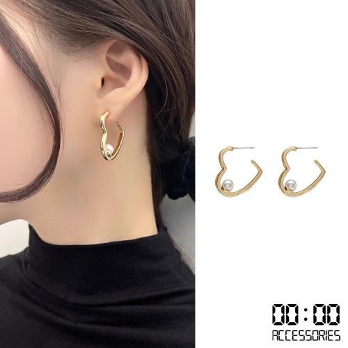 【SECRET BOX】韓國設計S925銀針簡約愛心線條珍珠耳環